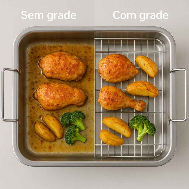 Dica do Chef: Use a grelha para elevar carnes e deixar a gordura escorrer – resultado mais saudável e crocante!