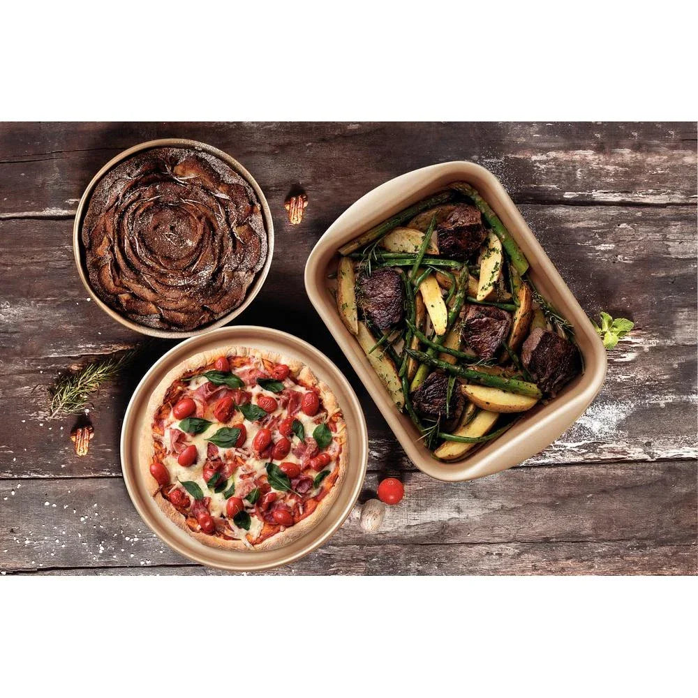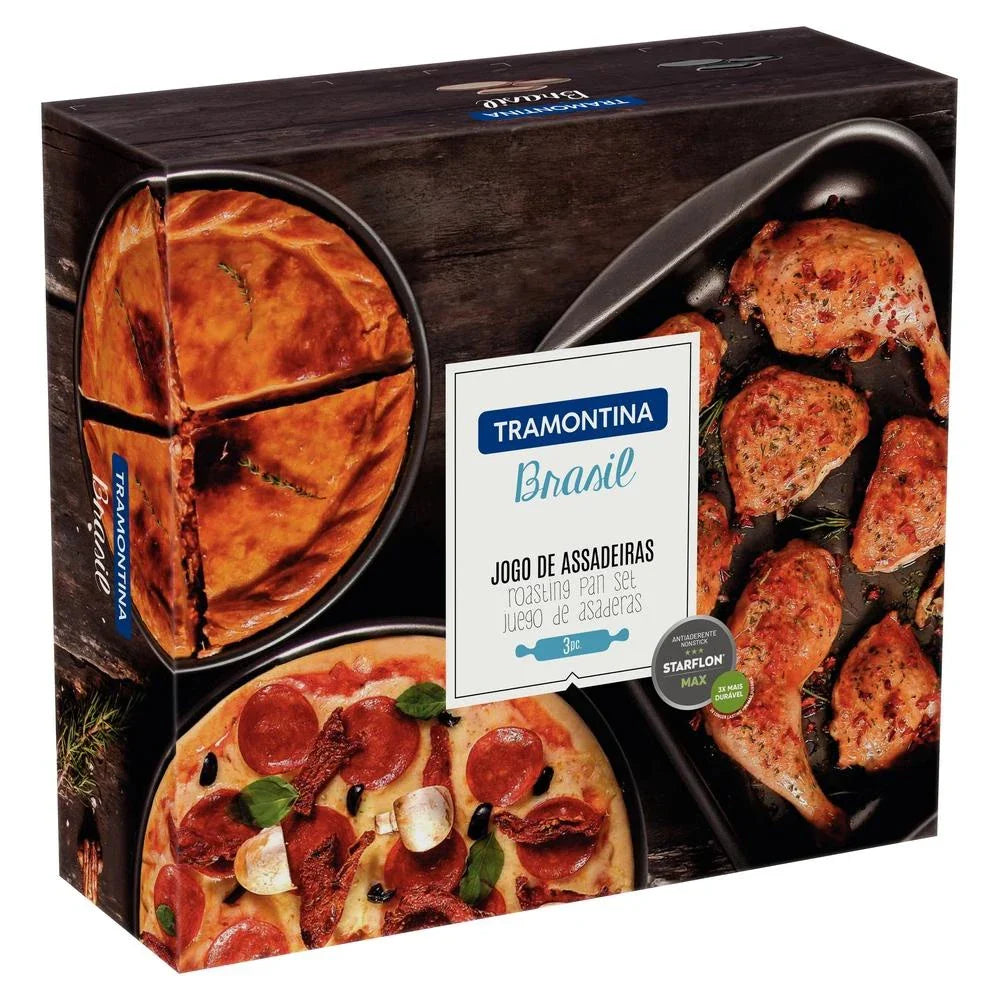 - Conteúdo do Kit: 3 assadeiras (30cm, 24cm, 28cm).