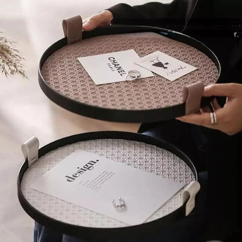 - 1x Bandeja Redonda Decorativa com Alça para Sala e Banheiro Lenogue