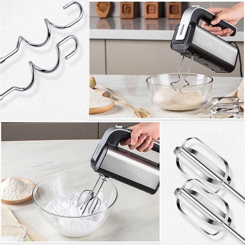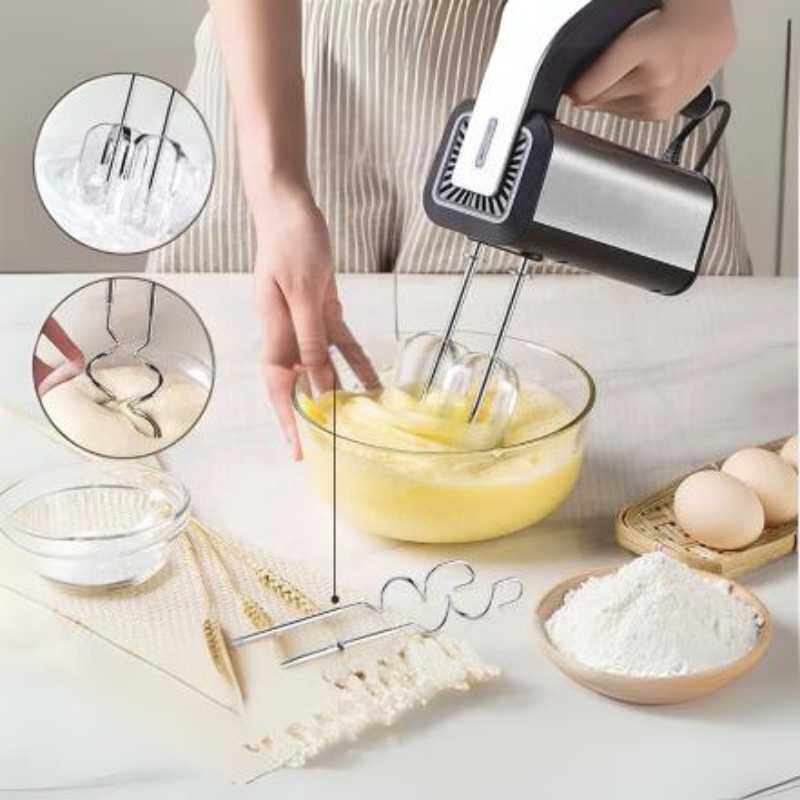 Equipada com dois tipos de batedores em aço inoxidável, essa batedeira é versátil e prática. Ela inclui: