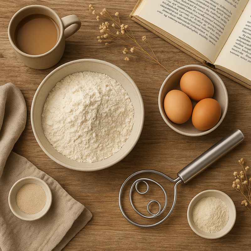Dica do Padeiro: Para massas úmidas, use movimentos circulares firmes. O arame largo do Batedor Dinamarquês incorpora farinha sem formar grumos!