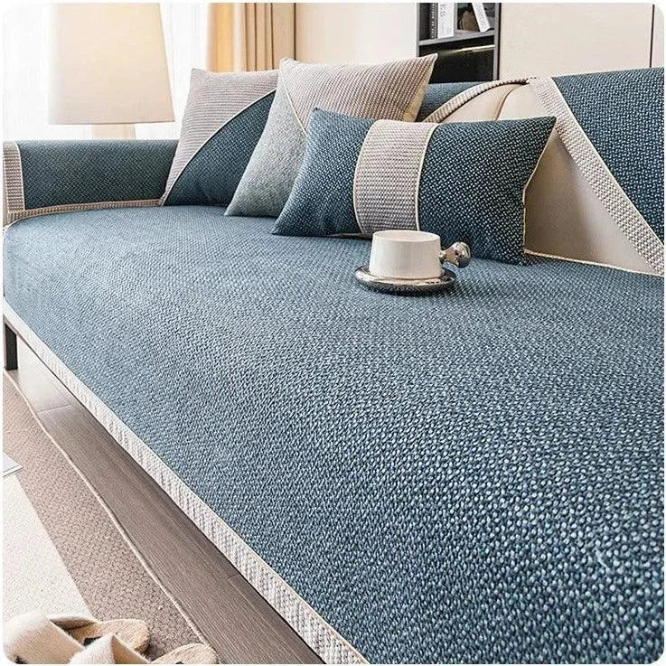 A Capa de Sofá Antiderrapante em Algodão e Linho Azul Escuro Lenogue protege e renova seu sofá com conforto e estilo. Feita em algodão, linho e poliéster, oferece segurança antiderrapante e fácil limpeza.