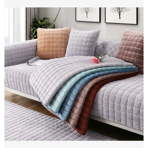Capa de Sofá Veludo Xadrez Pelúcia Antiderrapante Espessada Cinza Offertaza