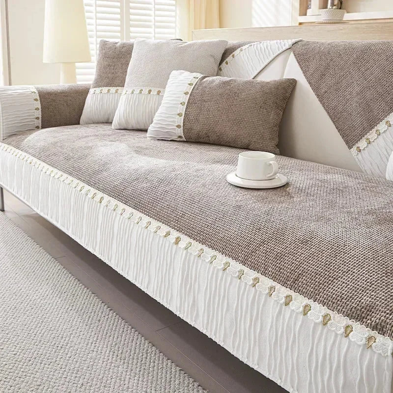 - 1x Capa para Sofá Chenille Antiderrapante com Acabamento Elegante Marrom Escuro Lenogue.