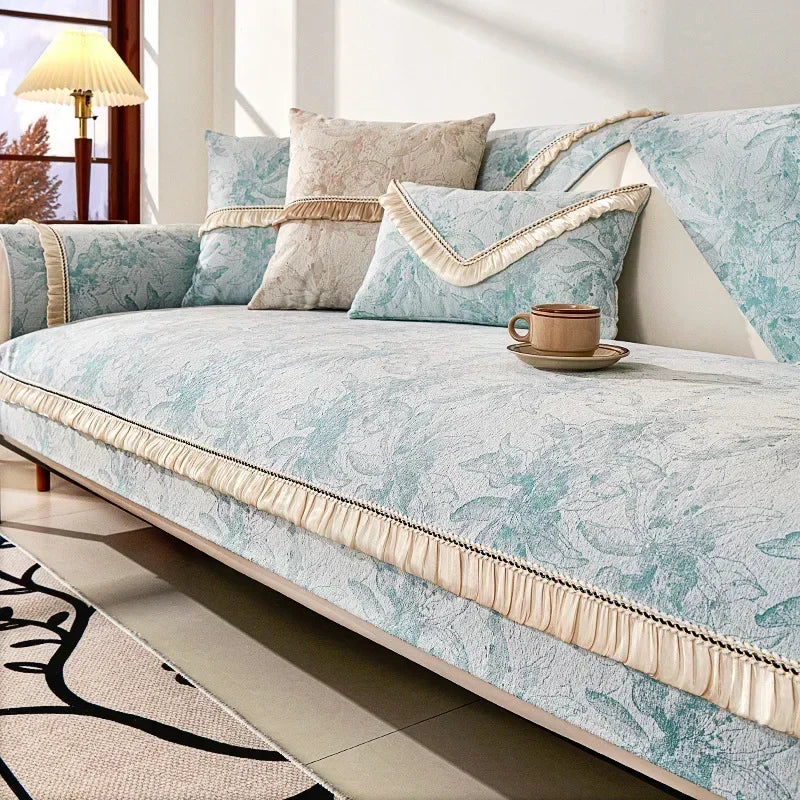 A Capa para Sofá em Chenille Antiderrapante Azul Claro para Sala Lenogue combina sofisticação e proteção para manter seu sofá impecável com estilo.