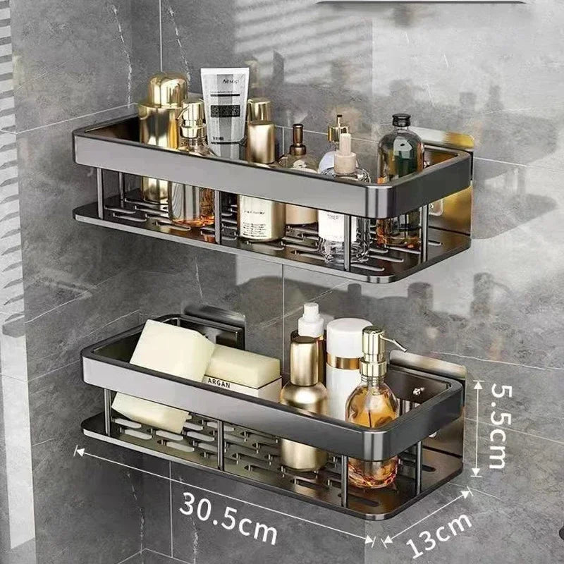 - 1x Organizador de Banheiro em Alumínio Sem Furar para Shampoo e Toalhas Lenogue, de acordo com a variante de cor e tamanho escolhida.