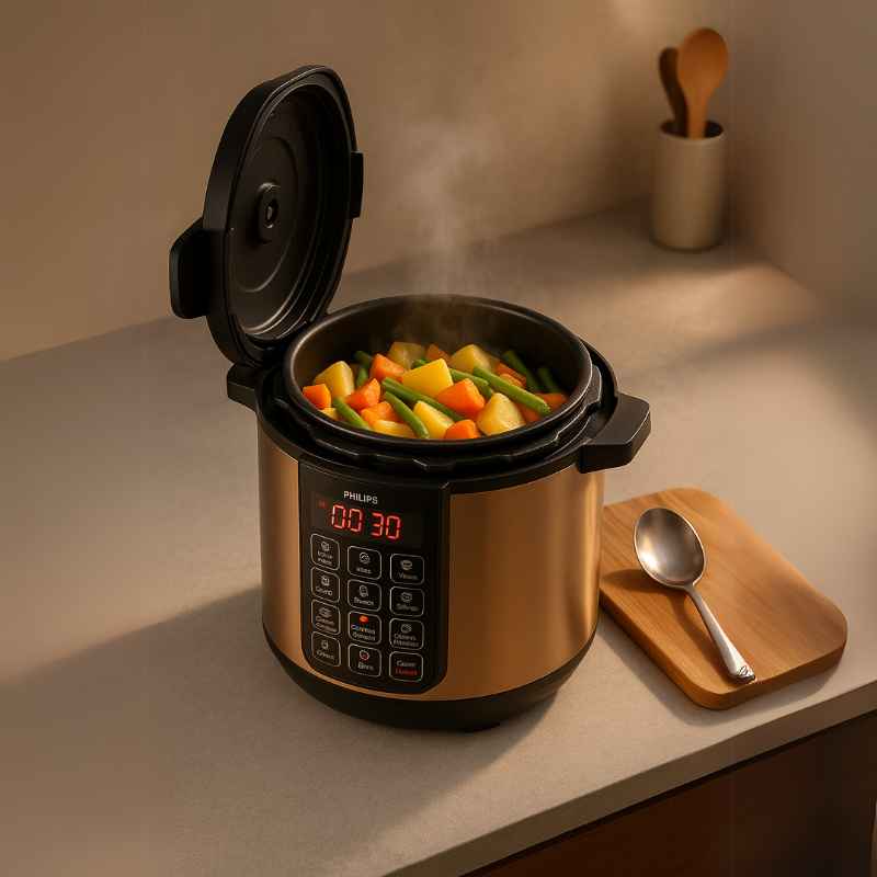 Para quem busca praticidade sem abrir mão do sofisticado, esta panela elétrica é a solução definitiva. Com tecnologia digital avançada e acabamento em inox espelhado, ela une segurança hospitalar, desempenho profissional e design elegante – transformando preparos complexos em tarefas simples, seja no dia a dia ou em jantares especiais.
