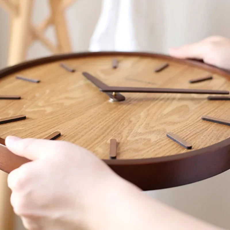 O Relógio de Parede Madeira Circular Silencioso para Sala Lenogue traz um toque natural e retrô à decoração, com estrutura em madeira e funcionamento silencioso por mecanismo de quartzo.