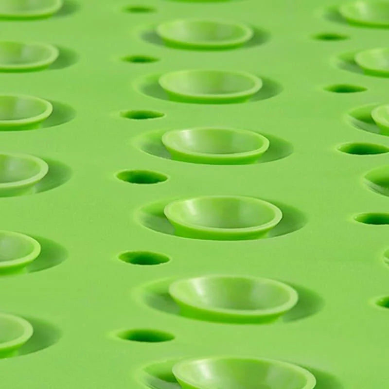 Sistema avançado de ventosas de alta fixação que mantém o tapete perfeitamente aderido ao piso, eliminando qualquer risco de deslizamento durante o banho.