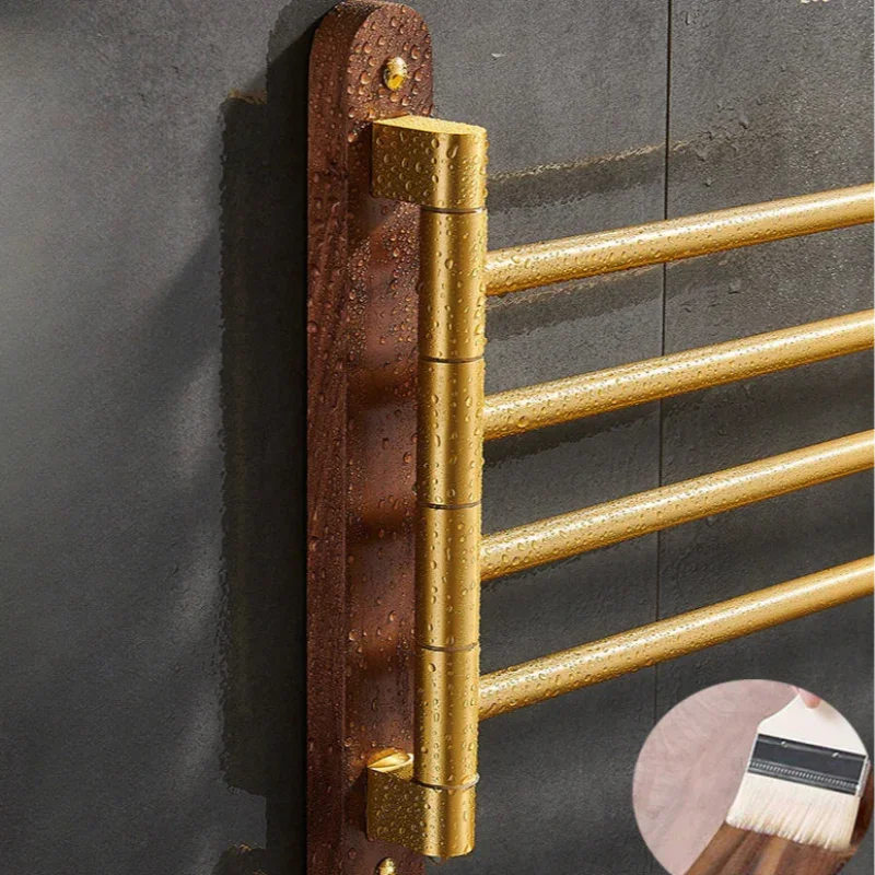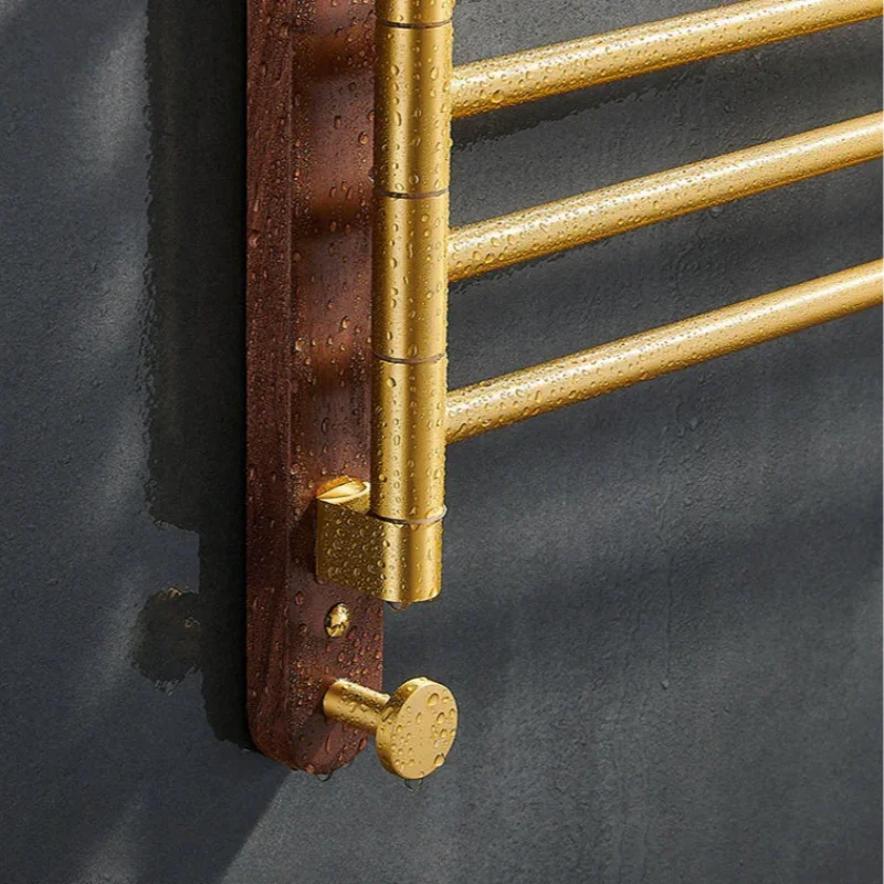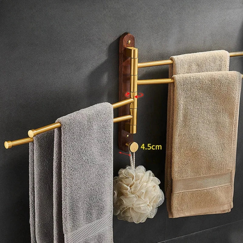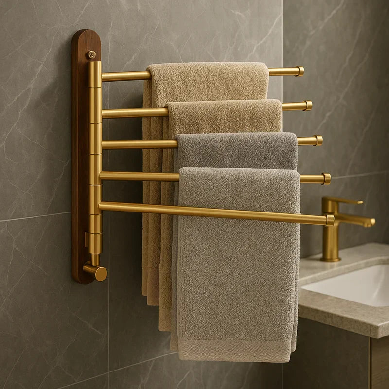 O Toalheiro de Parede Escovado Dourado com Madeira Nogueira Lenogue combina sofisticação e funcionalidade com acabamento premium e gancho integrado para organização prática.